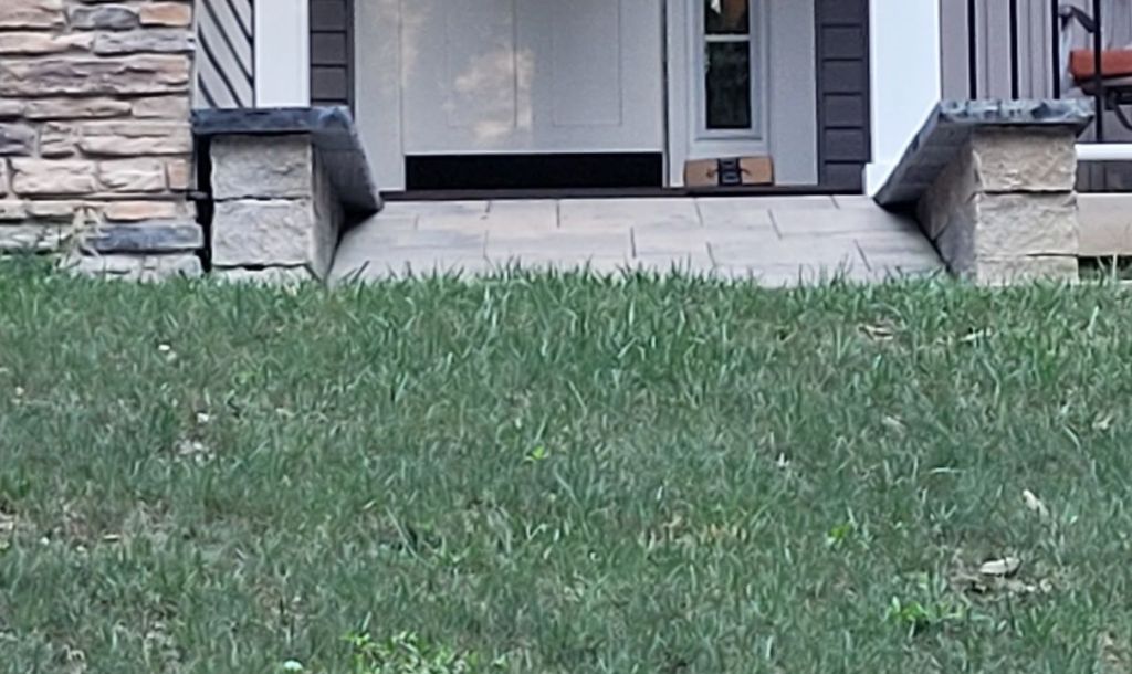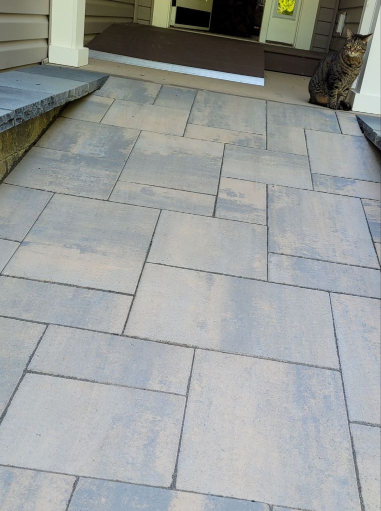 I had admired a stone accessible path at my sister’s house and decided to use the same contractor to create a stone paver ramp to my front porch. My house has stone on part of the exterior, and I hoped the ramp would blend with the house.