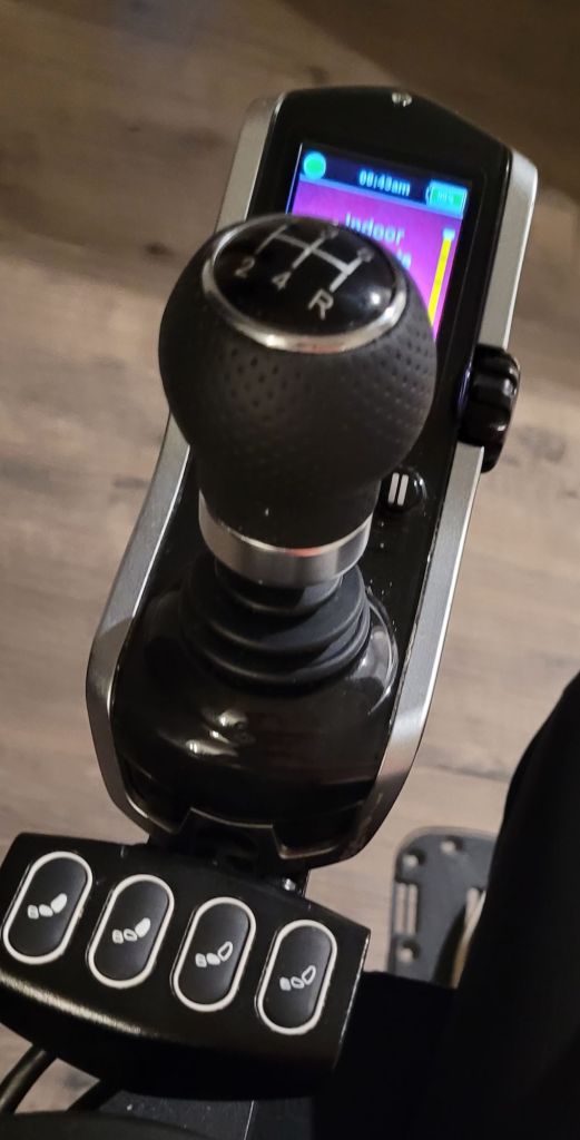 I am excited to share my joystick! Once I found the car seat cover, I wondered what other car items would help me. I found the standard joystick hard to hold at times. It pulls straight off to change. I found a car gear shift knob that came with a .25 inch diameter adapter for under $10! The size, shape, and silicone sides make this much easier for me.
