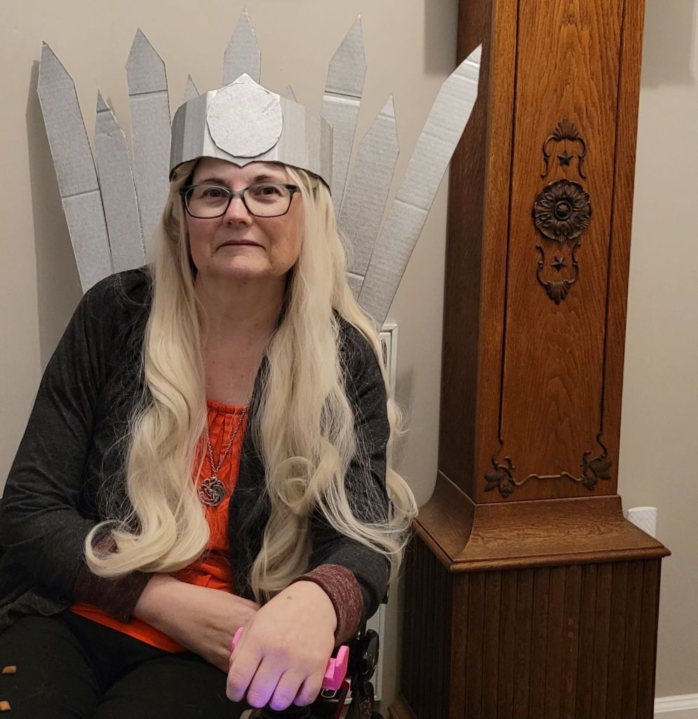 This year, I decided to include my wheelchair in my Halloween costume. I was inspired by Games of Thrones and House of Dragons shows. Why not turn the wheelchair into the sword throne?